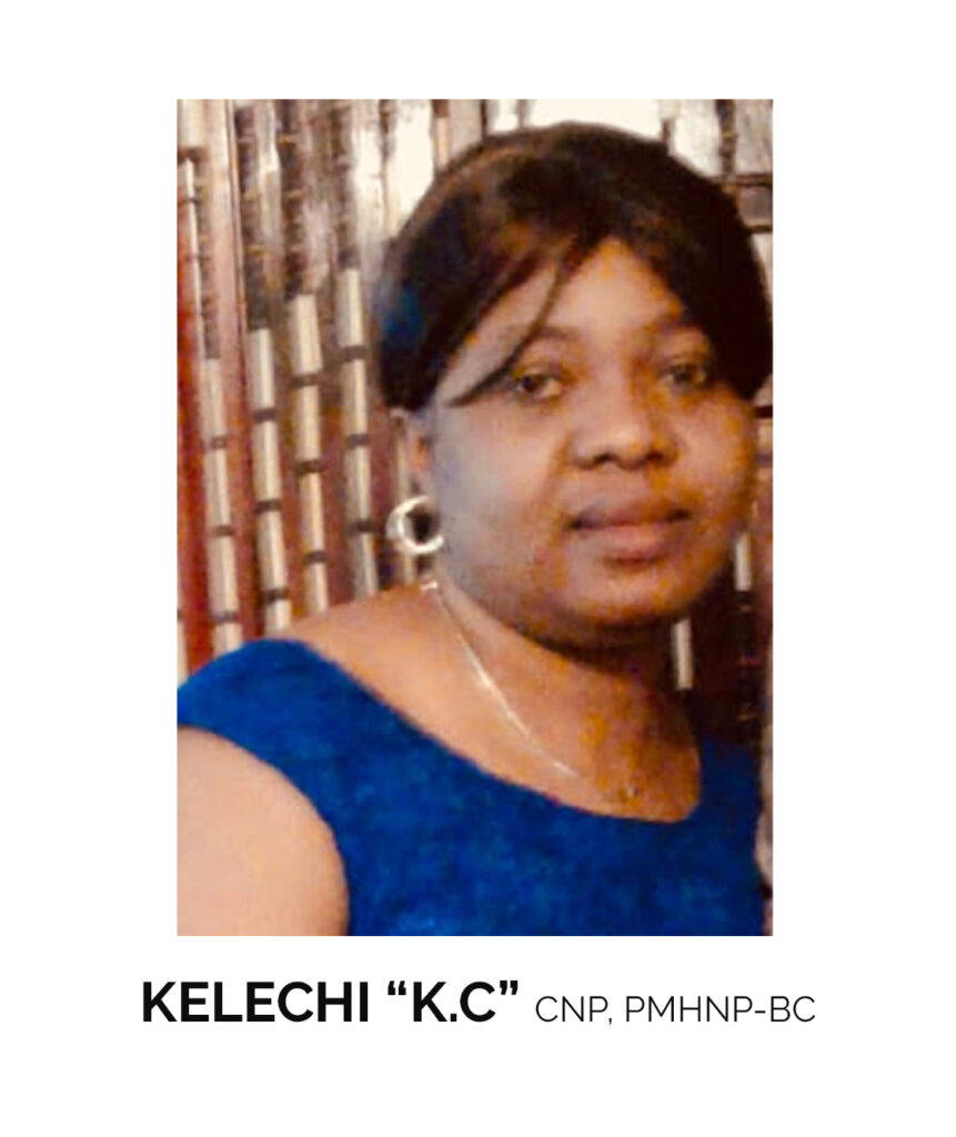 Kelechi “K.C.” (CNP, PMHNP-BC) is a Board Certified Psychiatric and Mental Health Nurse Practitioner. She has prescriptive privilege to prescribe medications for people with mental health problems of all age groups. K.C. has worked in both inpatient and outpatient psychiatric settings providing care for adult and geriatric patients. The experience she gained during this period has enhanced her ability to create and maintain therapeutic relationships with her clients.